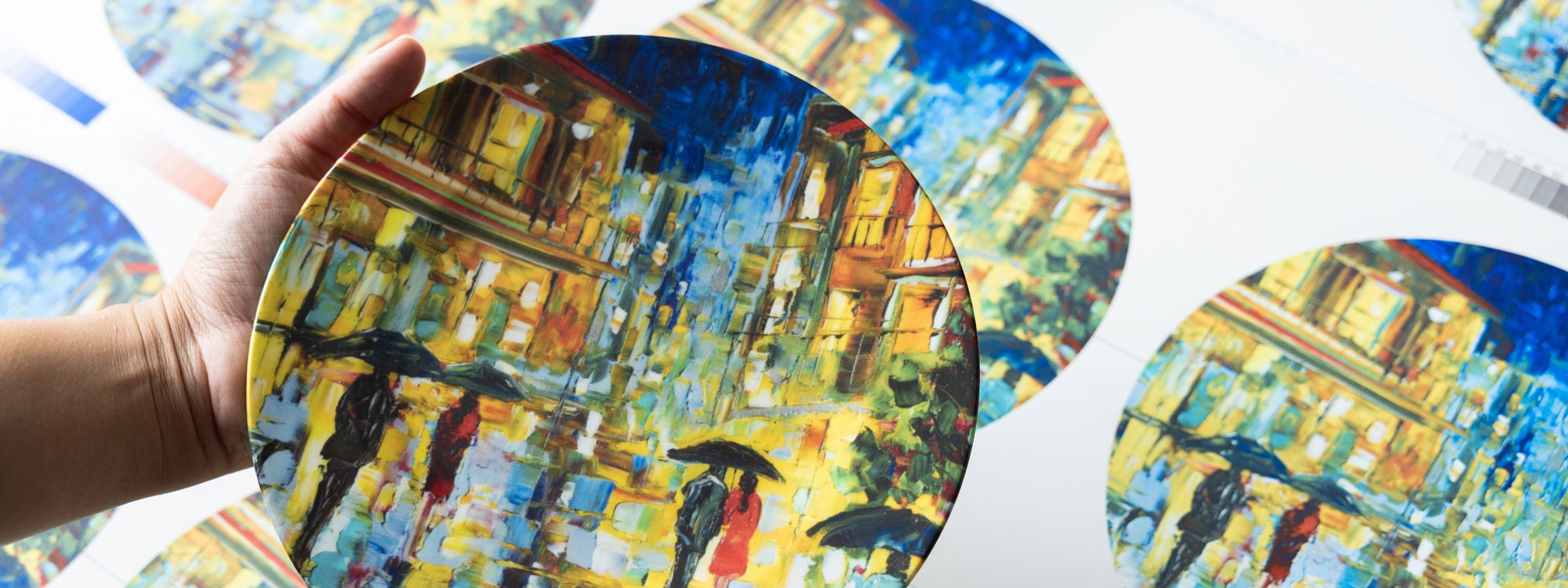 La stampa digitale avviene su una speciale carta transfer ad immagine a scivolamento a umido, il che rende non necessaria la presenza dell’oggetto da decorare sul posto. I decori possono essere prodotti in anticipo, immagazzinati o spediti in tutto il mondo e trasferiti successivamente sul substrato – ideale per una produzione decentralizzata o per progetti on-demand.